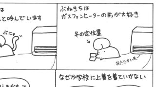 ぶねのすけ 上着着ない 冬はガスファンヒーターの前から離れないぶねきち。暖かいところが好きなくせに、なぜか学校には上着を着ていかず…。そんなある日、今季最大の寒波がやってきて… 2022.01.31 ぶねのすけまんが