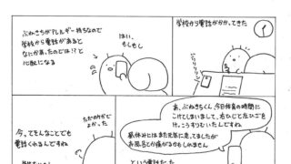 ぶねのすけ まだいたかった。 いつもは学童に迎えに行くと喜んでくれる甘えん坊のぶねのすけ。でも冬休みのある日、いつもより30分早く迎えに行くと…。あれ?今日はなんだか元気がないぞ… 2022.02.04 ぶねのすけまんが